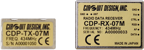 Circuit Design’s multichannel telecommand radio modules contain all the necessary circuits for robust communication of ON-OFF signals. Transmit up to 6 ON-OFF switching signals in the 434 MHz band or 8 ON-OFF signals in worldwide standard 2.4 GHz using frequency hopping spread spectrum. ID pairing between units and multiple use in one area possible.